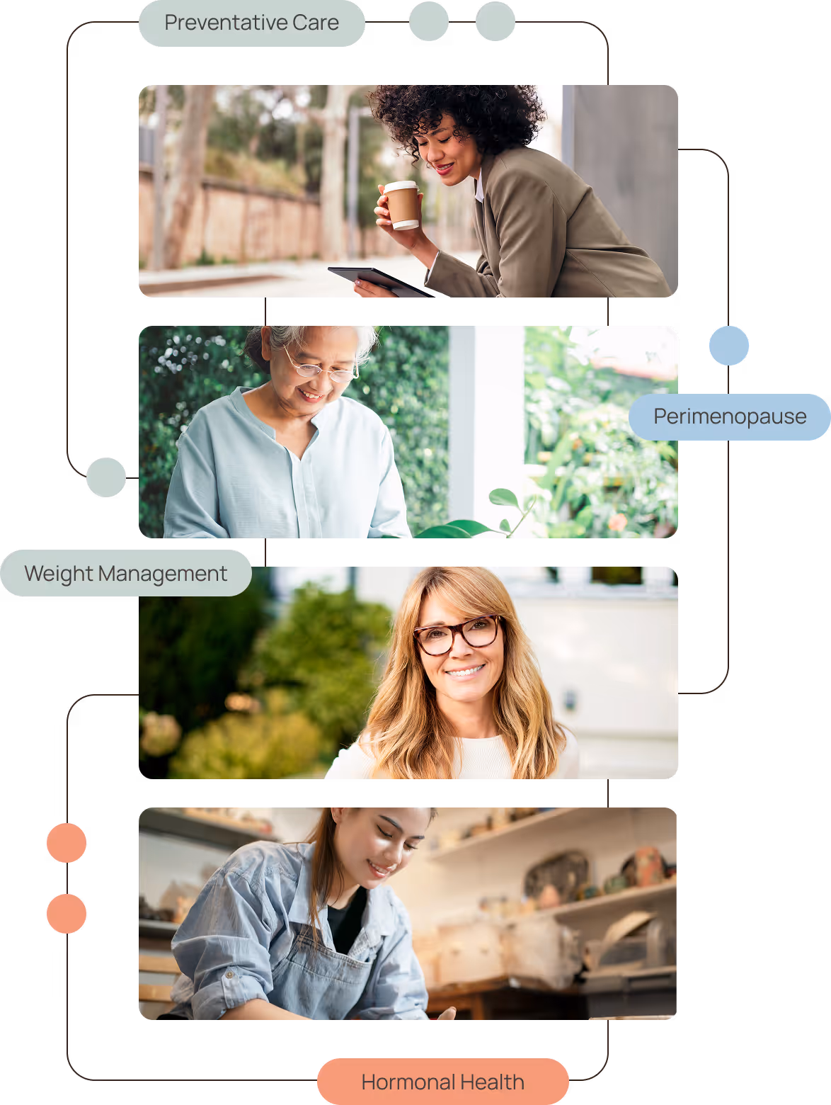 We’re building modern women’s care designed to support you through all of life’s hormonal shifts, health milestones, and wellness needs.
